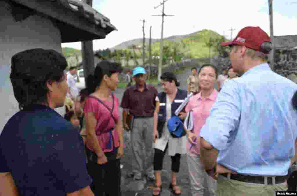 북한 주재 유엔 기구와 국제적십자 합동조사단은 지난 6일 수해 지역인 평안남도 개천시와 성천군을 방문하고, 피해 상황을 조사했다. 사진제공: 유엔.