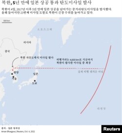 일본은 이 미사일이 도호쿠 지역 북단 아오모리현 인근 상공을 통과해 태평양에 낙하했다고 밝혔습니다.